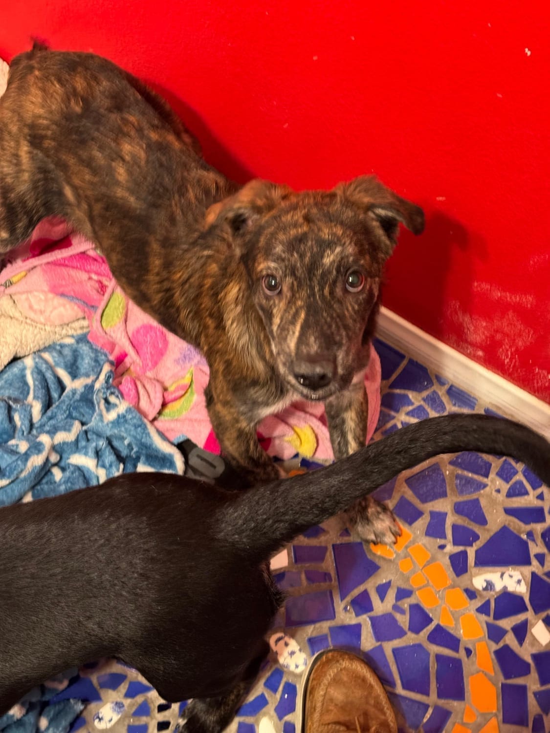 In foster care, both puppies are finally learning what every young dog deserves — gentle hands, warm spaces to sleep, full bellies, and the comfort of knowing they are protected.